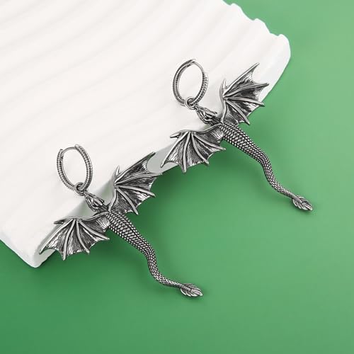 HZMAN Dragon Dangle Drop Earrings for Men Stainless Steel Gothic Punk Dragon Earring Hinged Huggie Hoop Earring Jewelry Gift
