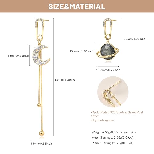• Lightweight: The planet earring size is 19.5mm(0.77")*32mm (1.26"), The moon earring size is 14mm(0.55")*85mm(3.35"). Engineered with lightweight tassel, these celestial earrings do not burden the ears and are uncomplicated to put on and take off.