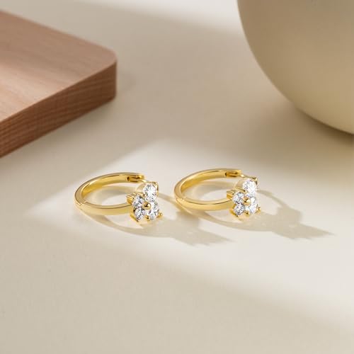 • [DAZZLING SPARKLE WITH EVERY STEP] Each stone on the gold plated gold earrings for women is precisely cut for maximum brilliance, reflecting light enjoy tiny stars on your ears. Whether under sunlight or evening lights, these 14k gold hoop earrings for women catch attention and boost your glow effortlessly
