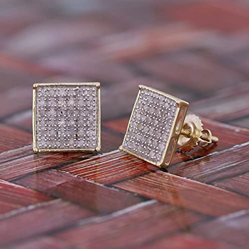 popular ! 1/4 cttw Round Diamond Square Cluster Unisex Yuva Stud Earrings In 10kt Gold