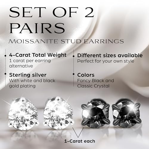 Moissanite earrings, 14K Black and White Gold plated 925 sterling silver, D Color VVS1 Clarity, 2 pairs in a Signature set, Luxury gift box for Women and Men 1
