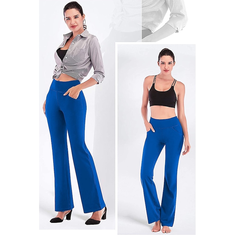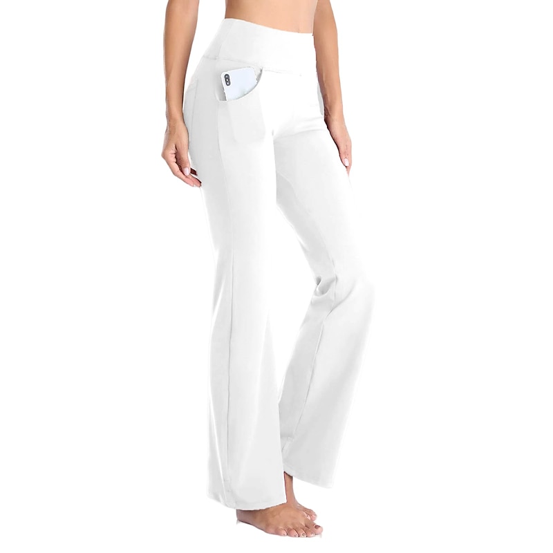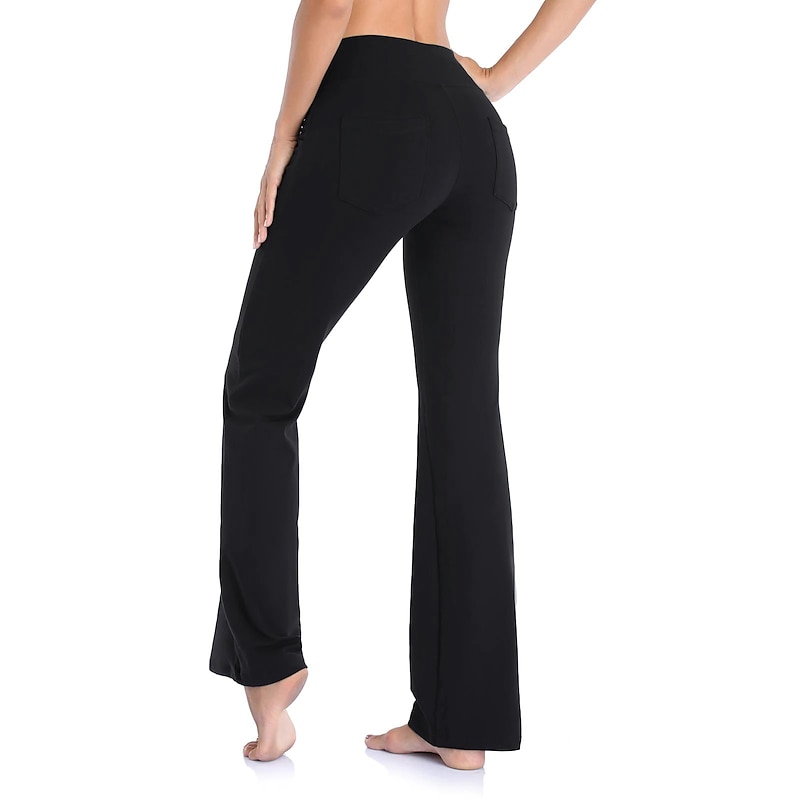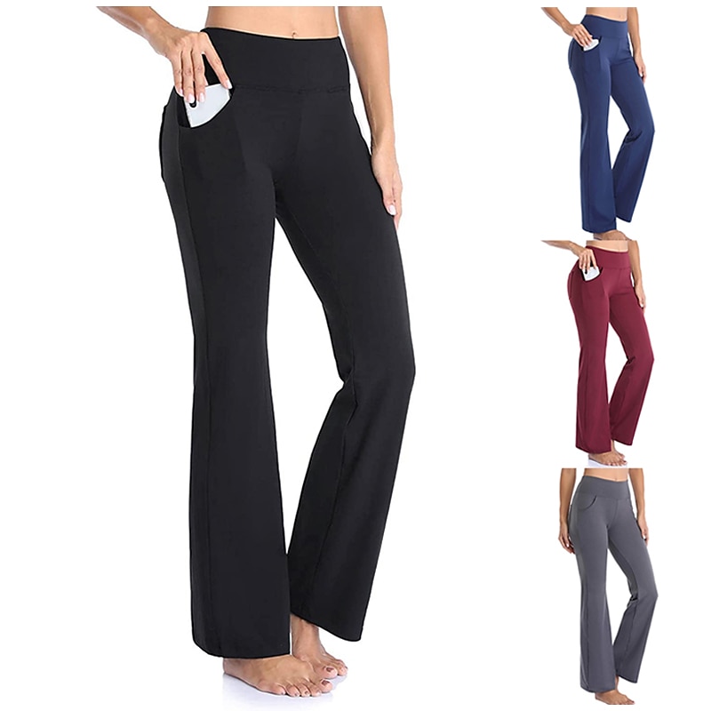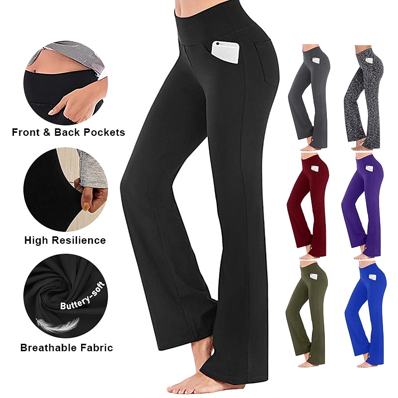 Highlights [Fabric] : Crafted from a premium blend of spandex and polyester, these women's yoga pants offer high elasticity and a buttery-soft feel, ensuring maximum comfort and breathability during any activity. [Fit] : Featuring a wide-leg design, these pants provide a versatile flare that is both contemporary and functional, allowing for ease of movement whether you're in the gym or out for a casual day. [Design Highlights] : The yoga pants are equipped with convenient side pockets that offer practical storage for essentials such as your phone and keys. The high waistline provides a snug fit and added support, enhancing the overall comfort and style. [Occasions] : Ideal for athletic and athleisure activities, these pants are perfect for yoga sessions, gym workouts, running, or simply as a comfortable option for everyday wear during the spring, summer, and fall seasons. [Size Range] : Available in a wide range of sizes from S to 4XL, these pants cater to various body types and ensure a fit that suits your personal preferences. Perfect for everyday use. supreme materials and excellent craftsmanship ensure long-lasting durability.