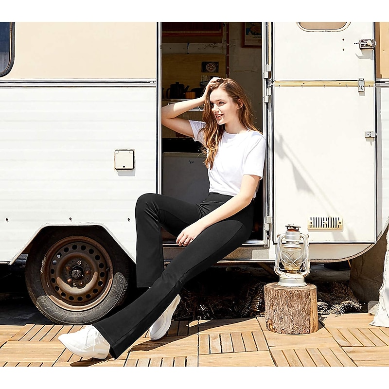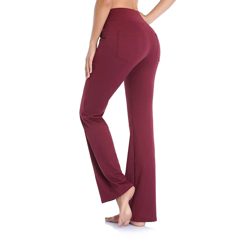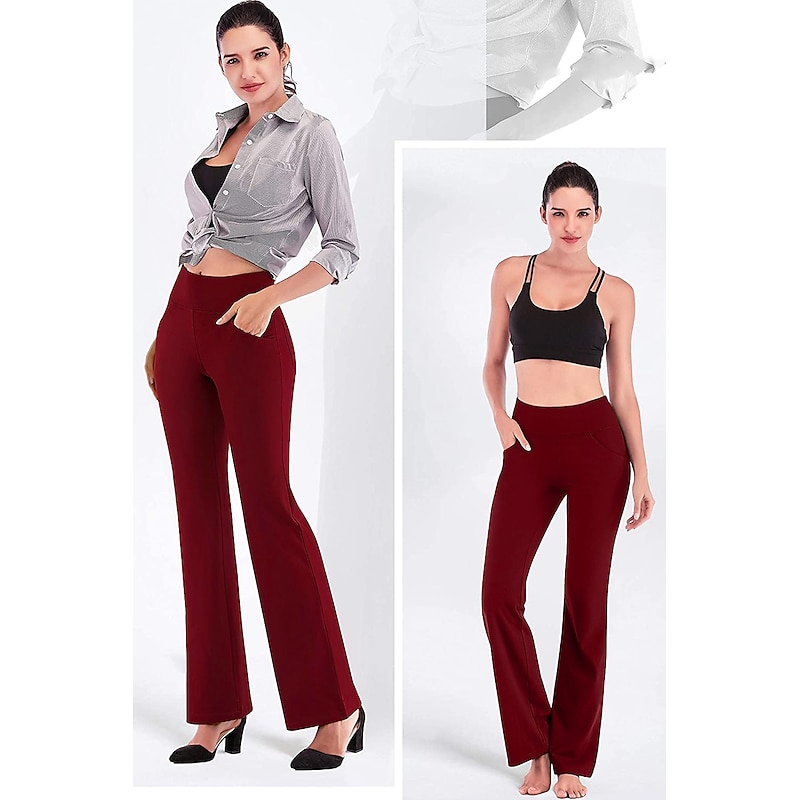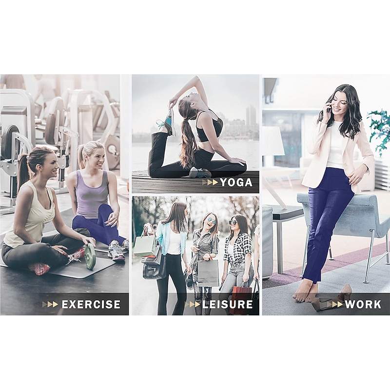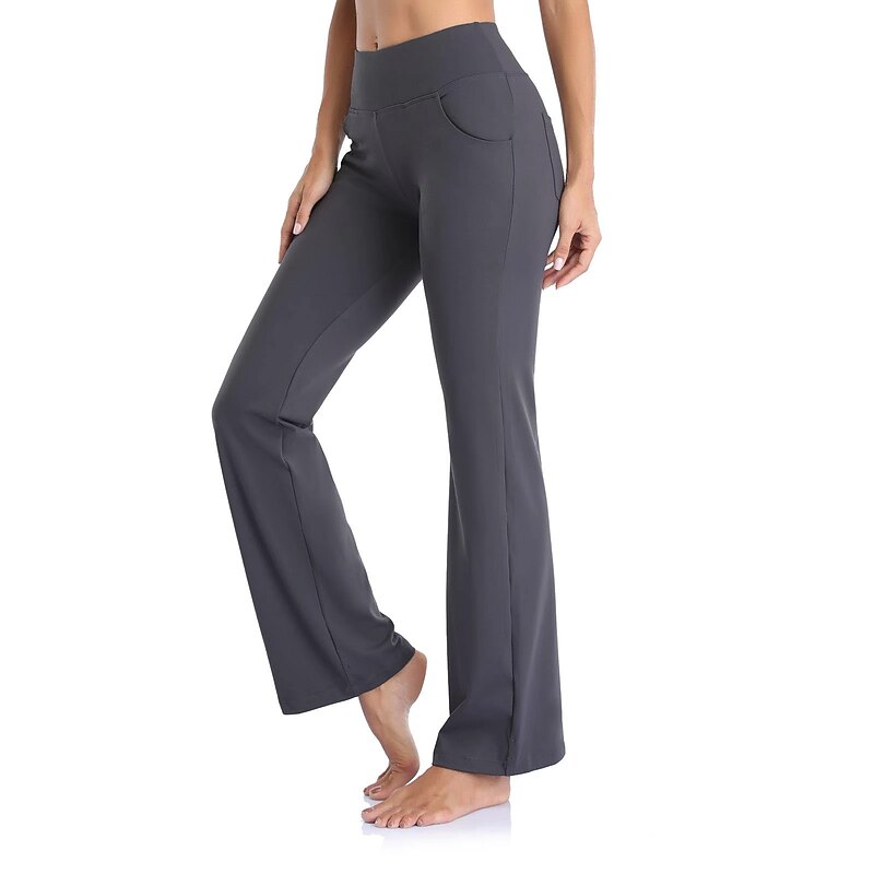 Highlights [Fabric] : Crafted from a premium blend of spandex and polyester, these women's yoga pants offer high elasticity and a buttery-soft feel, ensuring maximum comfort and breathability during any activity. [Fit] : Featuring a wide-leg design, these pants provide a versatile flare that is both contemporary and functional, allowing for ease of movement whether you're in the gym or out for a casual day. [Design Highlights] : The yoga pants are equipped with convenient side pockets that offer practical storage for essentials such as your phone and keys. The high waistline provides a snug fit and added support, enhancing the overall comfort and style. [Occasions] : Ideal for athletic and athleisure activities, these pants are perfect for yoga sessions, gym workouts, running, or simply as a comfortable option for everyday wear during the spring, summer, and fall seasons. [Size Range] : Available in a wide range of sizes from S to 4XL, these pants cater to various body types and ensure a fit that suits your personal preferences. Perfect for everyday use. supreme materials and excellent craftsmanship ensure long-lasting durability.