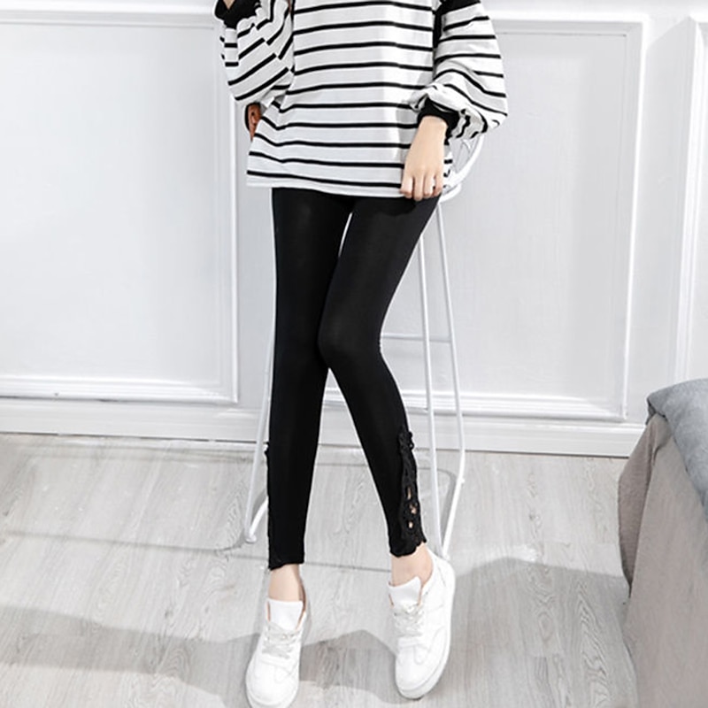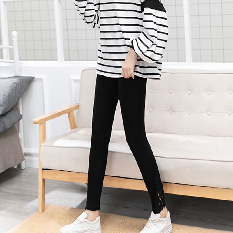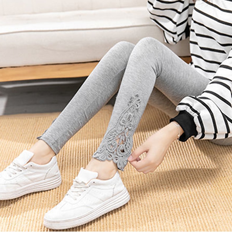 Highlights [Fabric] : Expertly crafted from a high-quality polyester blend, these women's leggings offer a soft and stretchy fit, perfect for casual, daily wear. The fabric's elasticity ensures both comfort and an ease of movement, making it a reliable choice for everyday activities. [Design and Fit] : These leggings feature a slim-fit silhouette that beautifully accentuates the natural curves of the legs for a flattering look. Designed in a classic solid color, they are adorned with delicate lace detailing at the ankles, adding a subtle touch of femininity and elegance. The ankle-length cut makes them versatile for a variety of styles, easily pairing with sandals or flats. [Design Highlights] : The intricate lace detailing at the ankle provides a unique design element that elevates these leggings from basic to stylish. This touch of charm makes them stand out, while their solid colored pattern maintains a chic and elegant simplicity. [Occasions] : Ideal for casual daily occasions, these leggings are versatile enough to wear for relaxed outings, at home, or can be dressed up for a more sophisticated look. The butt lift and tummy control features enhance the overall fit, providing a flattering silhouette for any activity. [Size Notice] : Available in a wide range of sizes from L to 4XL, these leggings are designed to accommodate a variety of body types, ensuring a comfortable and flattering fit for all wearers. Perfect for everyday use. supreme materials and excellent craftsmanship ensure long-lasting durability.