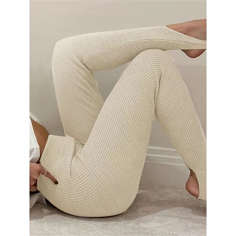 Women's Pants Trousers Leggings Cozy Leggings Fashion Streetwear Full Length High Waist Plain Elastic Waist Breathability Outdoor pleasant Micro-elastic Vacation Daily Daily Wear Apricot Grey