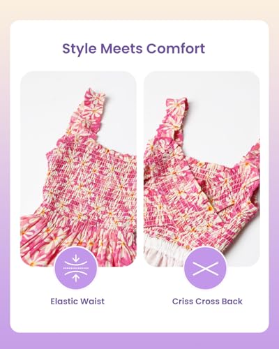 Fabric type: 100%Viscose FibreCare instructions: Machine WashOrigin: ImportedClosure type: Pull On【WELAKEN-I am special】: A vibrant summer staple that captures movement, color, and joy. Designed for spirited girls who turn every day into an adventure.【Ruffle Straps & Criss Cross Back】: Ruffle shoulder straps bring a playful, feminine touch, while the criss cross back features gathered shirring for added texture and style. A sweet silhouette from front to back.【Stretchy Shirred Top & Elastic Waist】: Allover shirring gives the upper body flexible support and a flattering fit, while the stretchy waistband adapts to movement and growth with ease.【velvety & Breathable Fabric】: Crafted from soft, airy fabric that stays breathable on warm days. It moves with her, keeping up with twirls, games, and everyday fun.【Perfect for Every Moment】: Whether she's at a birthday party, school day, weekend trip or playing dress-up, this dress blends comfort, beauty and versatility in one lovely look. Perfect for everyday use. supreme materials and excellent craftsmanship ensure long-lasting durability.