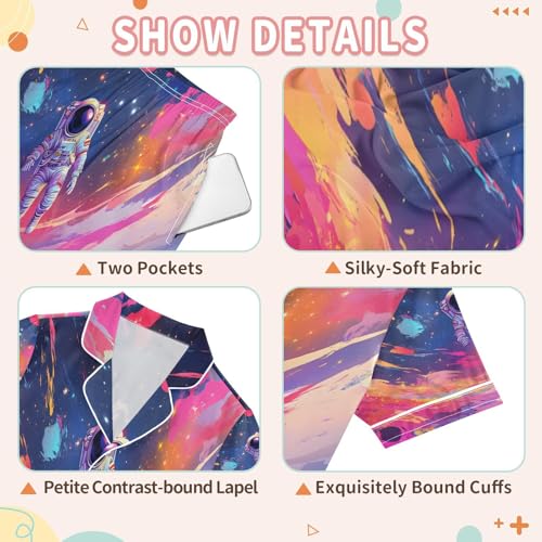 Why Choose ALAZA Astronaut Colorful Satin Pajamas Set Short Sleeve Button Down Sleepwear Summer Pjs 2 Piece?