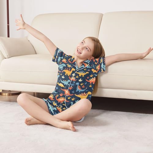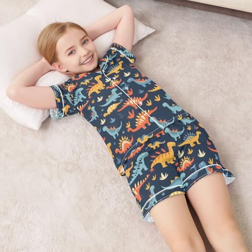Why Choose ALAZA Dinosaur on Navy Blue Cartoon Pajamas Satin Pajama Set Short Sleeve Button Down Sleepwear?