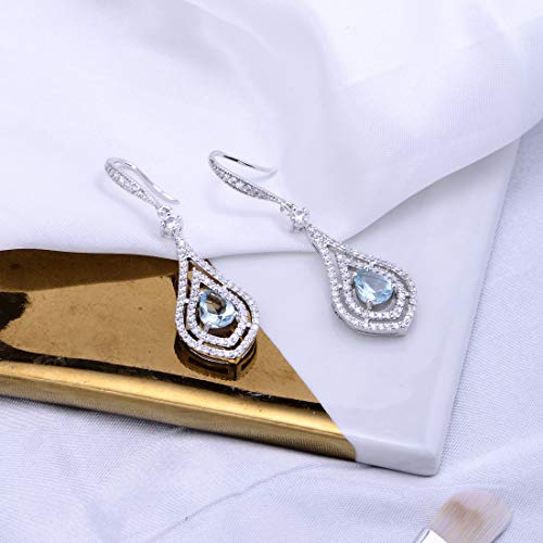 Cubic Zirconia Teardrop Dangle Earrings - Sterling Silver Pear Shape Crystal CZ Chandelier Rhinestone Wedding Statement Earring for Bride Bridesmaids Mother of Bride Pageant Party Prom 7