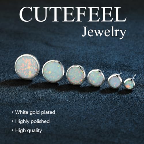 White Gold Plated Sterling Silver Opal Stud Earrings 3mm-8mm Options, Simulated Opal Dot Studs Hypoallergenic Jewelry 6