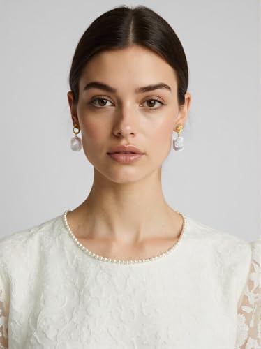 Material: SilverMetal type: SilverEarring design: DangleMetal weight: 2.8 gGem type: PearlGood quality materials:Gold earrings for women adopting long-lasting and durable 14K thick gold plating process, chunky gold earrings are made of sturdy 925 sterling silver, which is resistant to deformation and has excellent oxidation resistance and durability,you don't have to worry about quality issues at all.Beautiful design:earrings for women trendy below are high-quality pure natural freshwater baroque pearls, pearl earrings for women 100% handmade ,beautifully complements your face shape. When worn, the pearls gently sway, making you look even younger,easily handle a variety of occasionsComfortable wear:hypoallergenic earrings for women finely polished to fit the curve of the earlobe. Gold dangle earrings for women have undergone special hypoallergenic treatment to effectively reduce ear sensitivity and redness. Even if you have sensitive skin, you can wear them comfortably all day long without any discomfort.Product detail: asymmetrical pearl drop earrings for women one side is empty ring, the other side is solid ring with many holes, featuring unique design,the pearls are between 17 and 19 mm in length,width is 12-15mm.Gold statement earrings total length 32-35mm,We also offer you a variety of earrings to choose fromOccasionally Versatile:women's fashion gold earrings easy to wear, not easy to fall off, can reward yourself and pearl earrings for women exquisite packaging gift box also suitable for birthdays, Mother's Day, weddings, festivals as a heartfelt gift for your girlfriend/wife/best friend/mom, send them elegant blessings. Perfect for everyday use. excellent materials and excellent craftsmanship ensure long-lasting durability.
