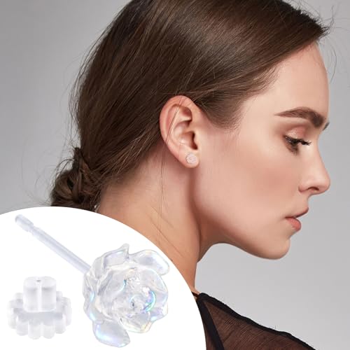 Material: PlasticBack Finding: Push BackEarring design: StudGem type: No GemstoneProduct Detail - Rose diameter: 6mm/0.25inch, 8mm/0.31inch. Earrings length:16.5mm/0.65inch, 17.5mm/0.68inch. Earring backs length:4mm/0.15inch. Sized to fit most people's ears, these plastic studs are delicate and elegant to wear, and light enough to not be a burden.Safe Material - These rose earrings are made of first-class plastic that is clear and non-toxic, not harmful to the ears and can be worn even by sensitive ears. These hypoallergenic earrings also prevent the ear holes from closing and are safe to use during sports or surgery.Wide Application - These rose studs are great for any occasion, whether it's a birthday, wedding, prom, anniversary, Mother's day, Christmas, etc. You can also give it to your love, which will be heartfelt.Multiple Sizes: These rose earrings come in 2 different sizes, allowing you to choose from different beauties.Package Included - 2 Pairs(4 pcs total) clear rose earrings and earring backs, you can choose the style you want depending on your mood and the outfit. faultless for everyday use. High quality materials and excellent craftsmanship ensure long-lasting durability.