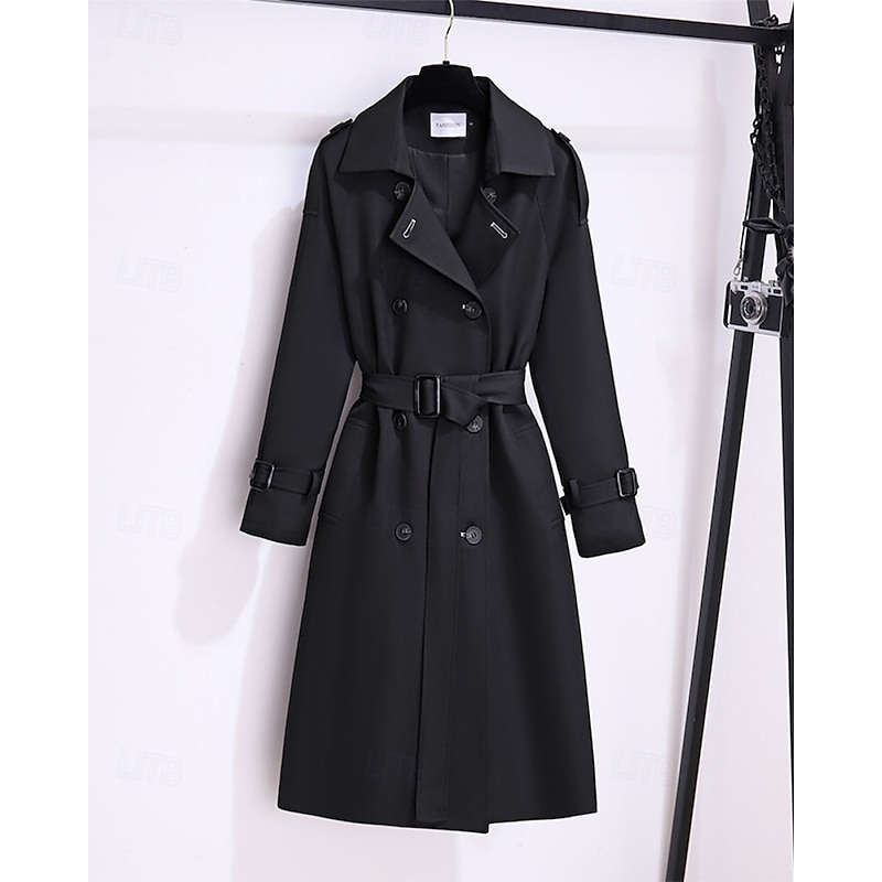 More information about Women's Trench Coat soft Buttons Pocket Fashion latest Plain Going out Weekend Double Breasted Long Turndown Regular Fit Long Sleeve Outerwear Black Khaki Fall Winter