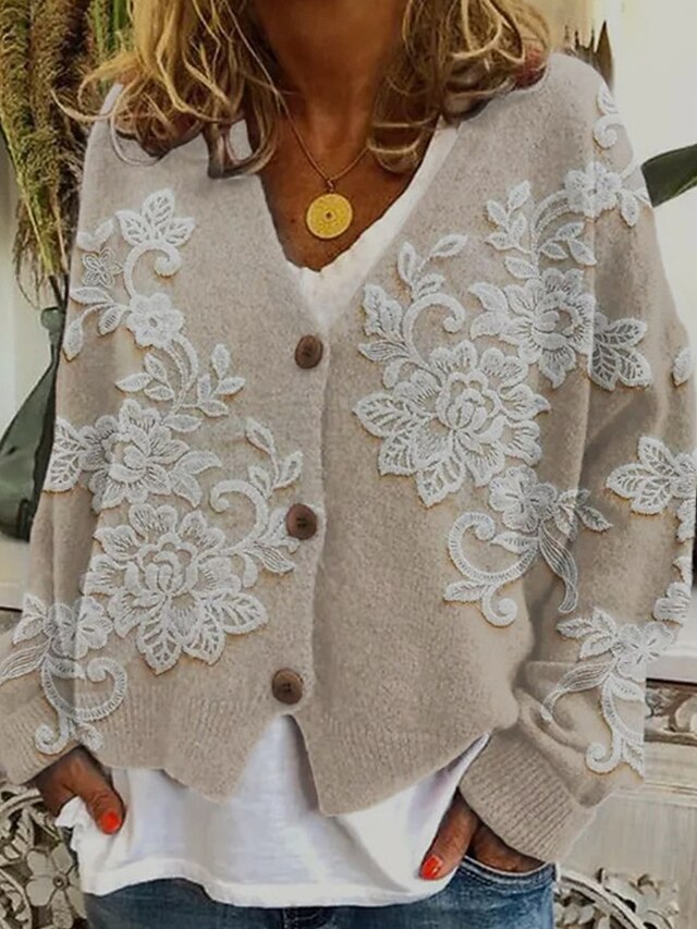 This Women's Coat Casual Jacket Warm Comfortable Print Fashion contemporary Casual Floral Going out Weekend Single Breasted Regular V Neck Regular Fit Long Sleeve Outerwear White Yellow Khaki Fall Winter combines elegant design with practical functionality. Every detail has been carefully considered to ensure you get the best possible experience. The premium construction means this product will serve you well for years to come.