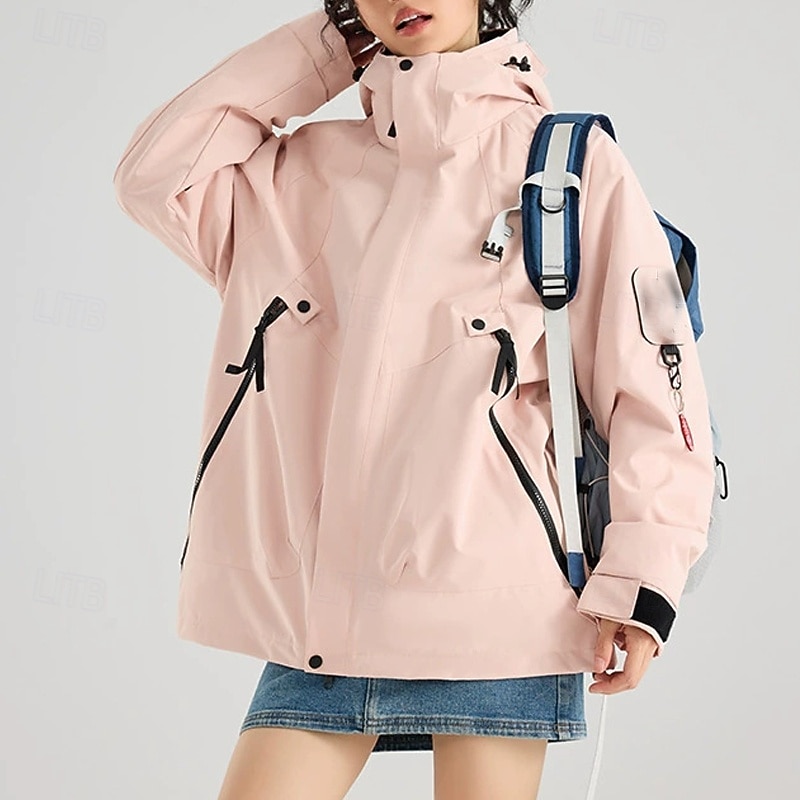 More information about Women's Trench Coat Waterproof Rain Jackets Rain Coats Waterproof Windproof Zipper Pocket Fashion Outdoor Plain Going out Weekend Zipper Regular Hooded Regular Fit Long Sleeve Outerwear Light Pink