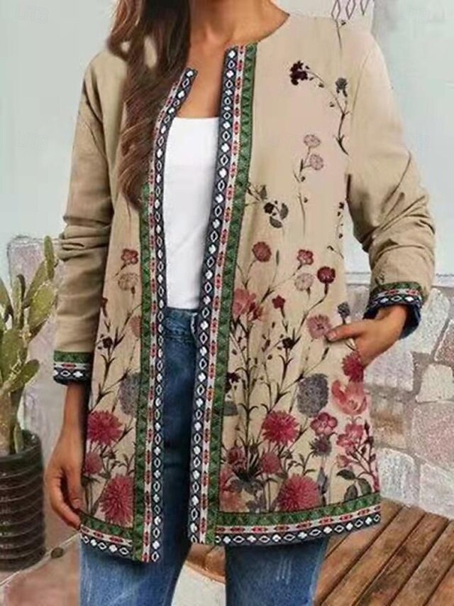 This Women's Casual Jacket Windproof Warm Pocket Color Block Open Front with Pockets Vintage present-day Floral Casual Daily Casual Daily Regular Crewneck Regular Fit Long Sleeve Outerwear Black Blue Green Fall combines elegant design with practical functionality. Every detail has been carefully considered to ensure you get the best possible experience. The first-class construction means this product will serve you well for years to come.