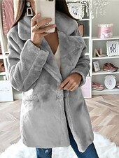 Women's Faux Fur Coat toasty Breathable Pocket Fleece Lined Casual Plain Vacation Street Daily Wear Going out Single Breasted Regular Turndown Regular Fit Long Sleeve Outerwear Khaki Gray Fall Winter