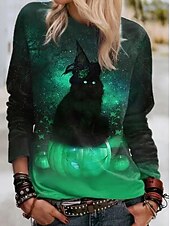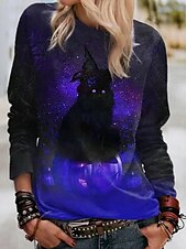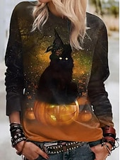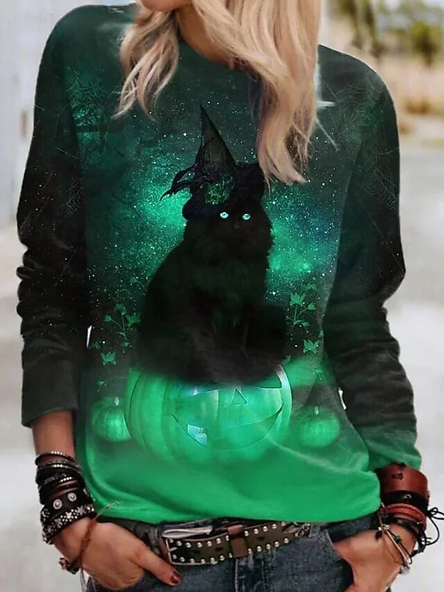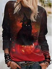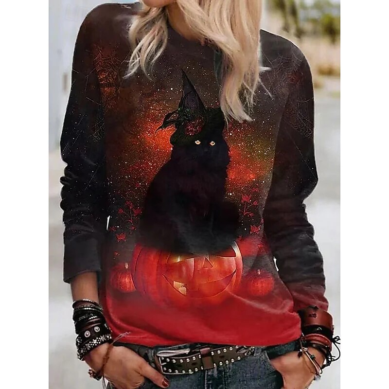 This Halloween Women's T shirt Black Cat Graphic Cat Vintage Fashion fashionable Long Sleeve Crew Neck Regular Tops Daily Weekend Print Yellow Red Blue Orange Green Spring Fall Winter combines elegant design with practical functionality. Every detail has been carefully considered to ensure you get the best possible experience. The superior construction means this product will serve you well for years to come.