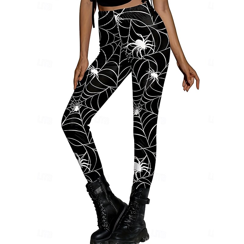 More information about Women's Leggings Vacation Vintage Fashion Full Length High WaistPantsHalloween Graphic Skull Halloween Printing supple Breathable High Elasticity Outdoor Vacation Street Black and White Black Spring