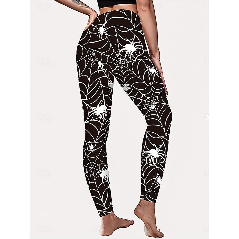 Women's Leggings Vacation Vintage Fashion Full Length High WaistPantsHalloween Graphic Skull Halloween Printing Soft Breathable High Elasticity Outdoor Vacation Street Black and White Black Spring 8
