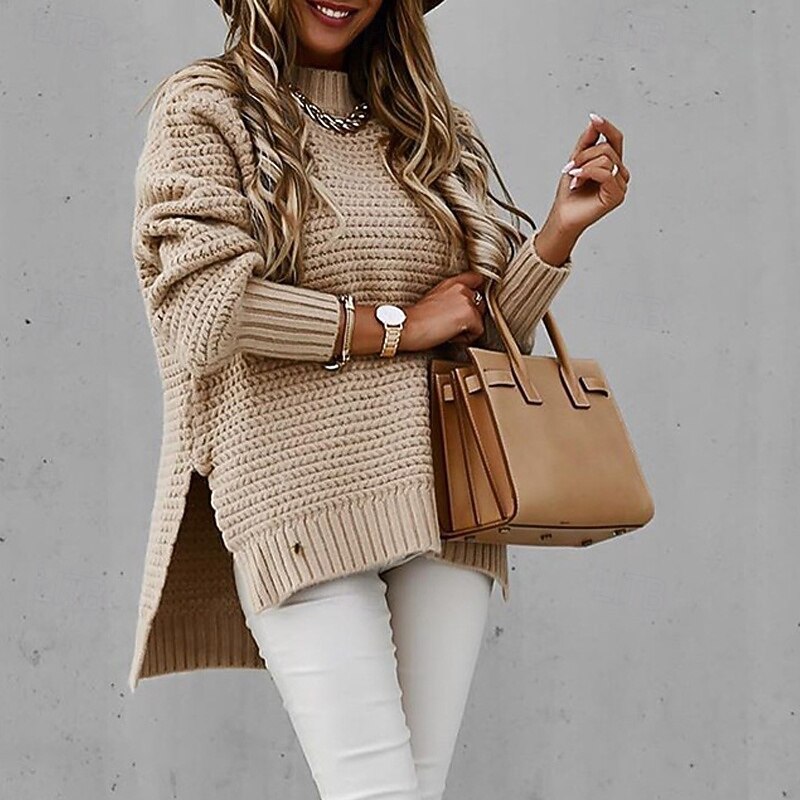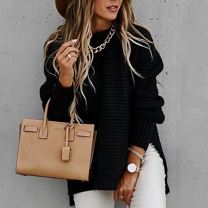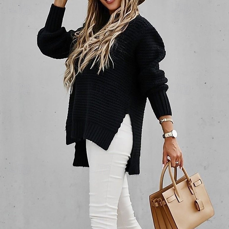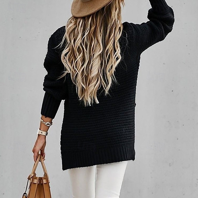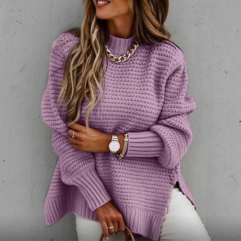 This Women's Sweater Fashion Casual Pure Color Ribbed Crew Neck Mock Neck Knitted Long Sleeve Regular Tops Knit Outdoor Daily Weekend Black Pink Fall Winter combines elegant design with practical functionality. Every detail has been carefully considered to ensure you get the finest possible experience. The first-class construction means this product will serve you well for years to come.