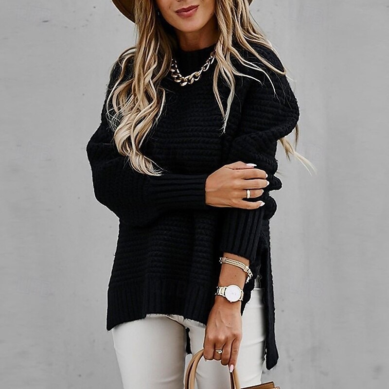 Why Choose Women's Sweater Fashion Casual Pure Color Ribbed Crew Neck Mock Neck Knitted Long Sleeve Regular Tops Knit Outdoor Daily Weekend Black Pink Fall Winter?