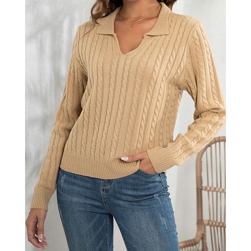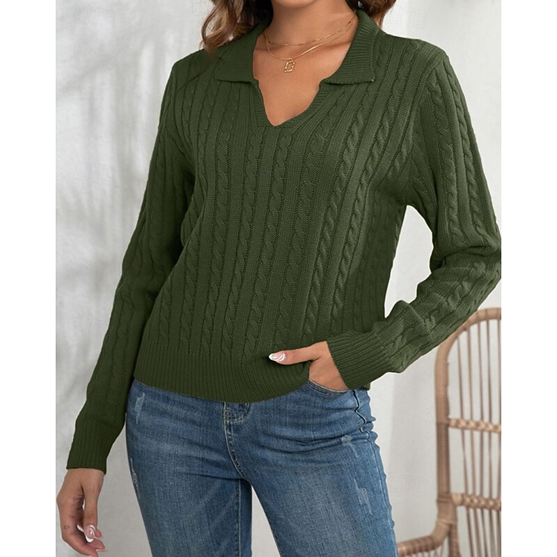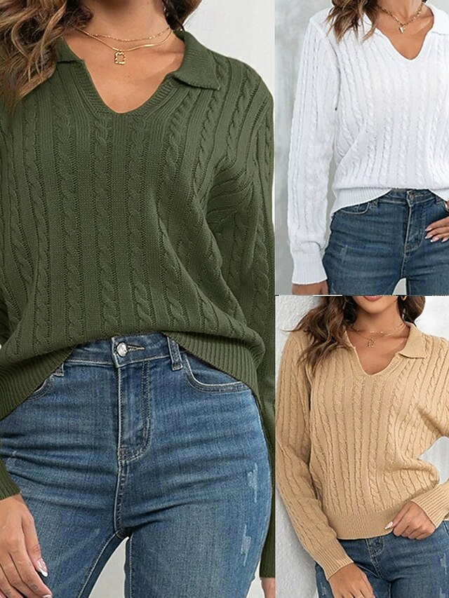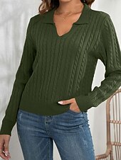 Why Choose Women's Pullover Casual Solid Color Chunky V Neck Knitted Long Sleeve Regular Tops Knit Daily Holiday Going out White Army Green Fall Winter?
