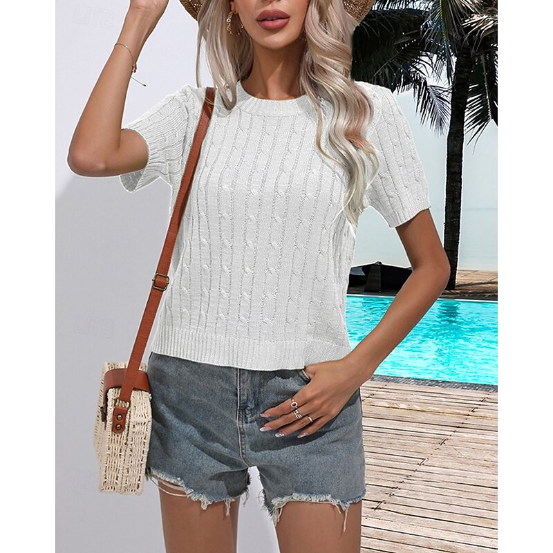 popular ! Women's Pullover Casual Solid Color Chunky Crew Neck Knitted Short Sleeves Regular Tops Knit Daily Holiday Going out White Yellow Summer