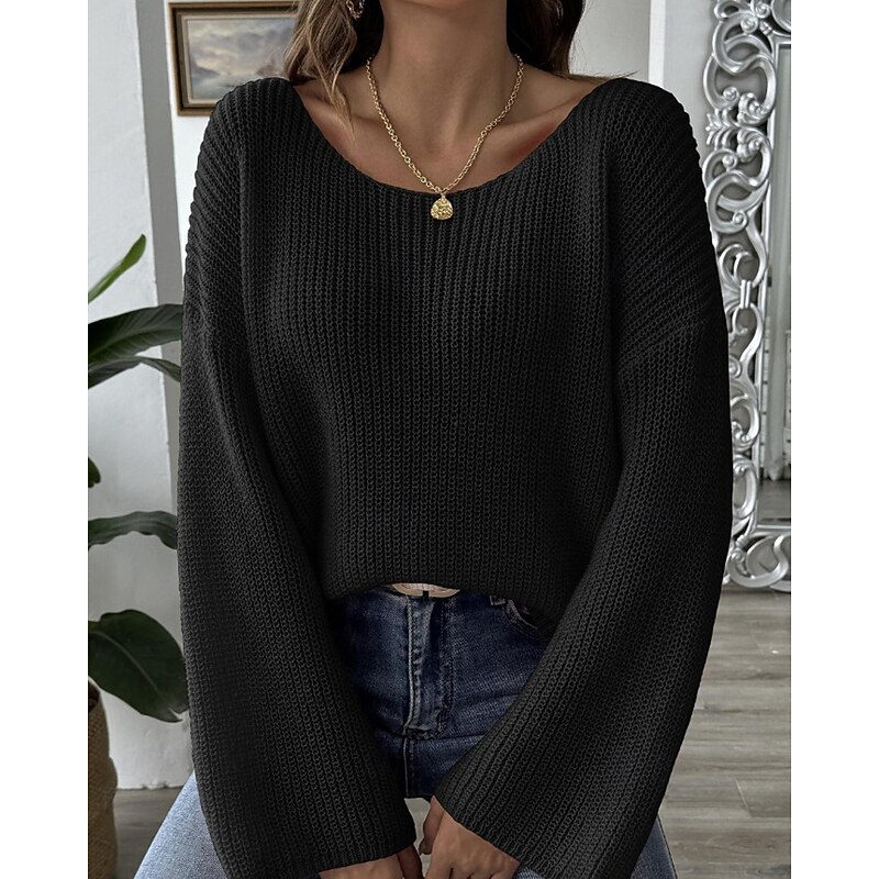 This Women's Sweater Pullover Streetwear Casual Solid Color Crew Neck Knitted Flared sleeves Long Sleeve Regular Tops Knit Daily Holiday Going out Black White Fall Winter combines elegant design with practical functionality. Every detail has been carefully considered to ensure you get the top possible experience. The premium construction means this product will serve you well for years to come.