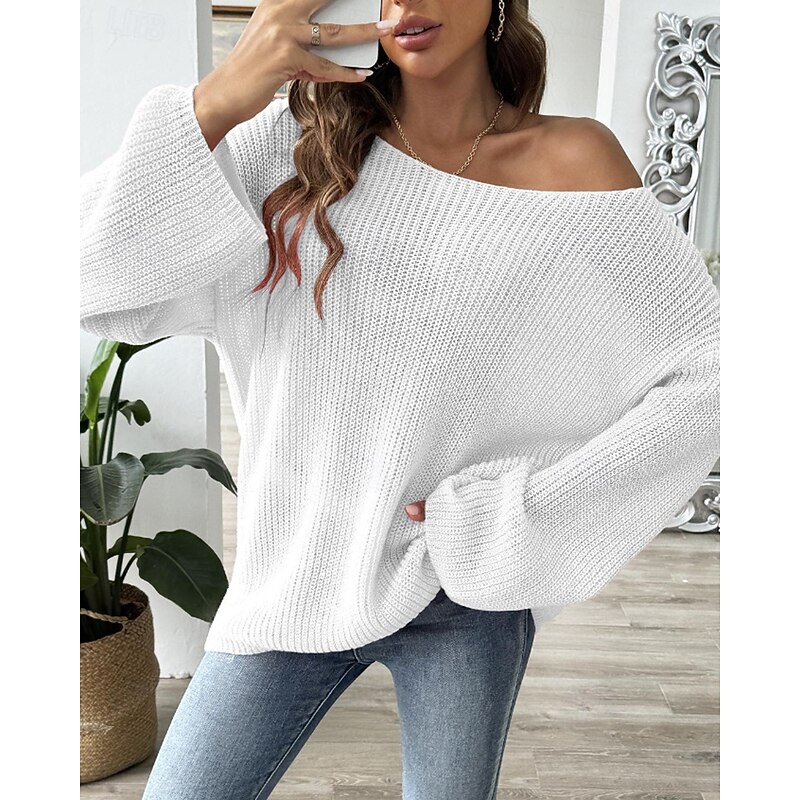 Why Choose Women's Sweater Pullover Streetwear Casual Solid Color Crew Neck Knitted Flared sleeves Long Sleeve Regular Tops Knit Daily Holiday Going out Black White Fall Winter?