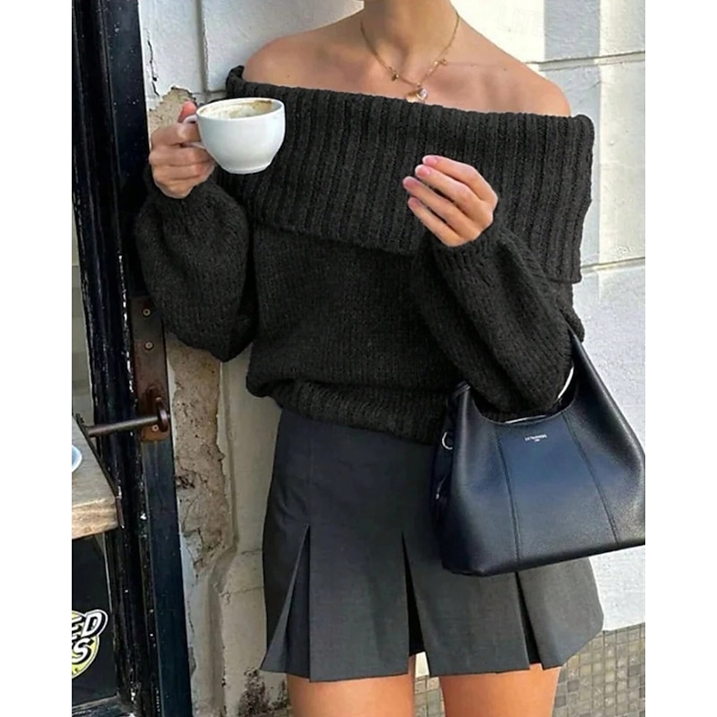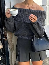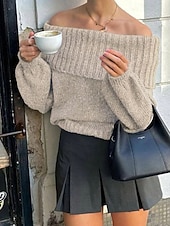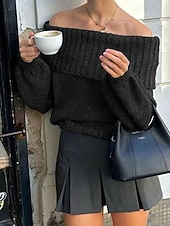 More information about Women's Sweater Fashion Streetwear Casual Pure Color Ribbed Off Shoulder Knitted Cold Shoulder Long Sleeve Regular Tops Knit Outdoor Daily Weekend Black Khaki Fall Winter