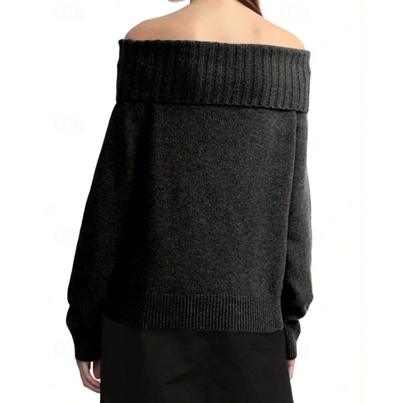 Women's Sweater Fashion Streetwear Casual Pure Color Ribbed Off Shoulder Knitted Cold Shoulder Long Sleeve Regular Tops Knit Outdoor Daily Weekend Black Khaki Fall Winter 2