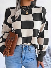 This Women's Sweater Pullover Casual Plaid Ribbed Crew Neck Knitted Long Sleeve Regular Tops Knit Daily Going out Weekend Gray Winter combines elegant design with practical functionality. Every detail has been carefully considered to ensure you get the finest possible experience. The first-class construction means this product will serve you well for years to come.