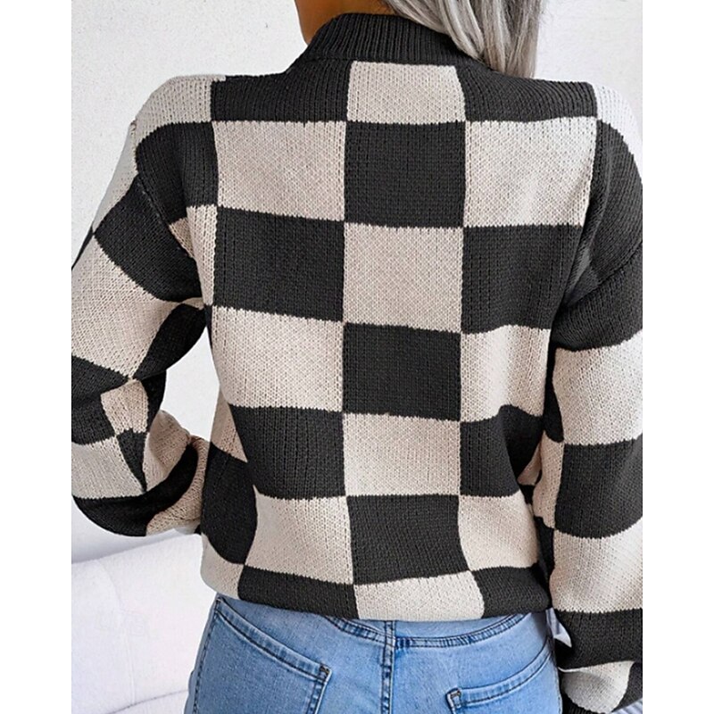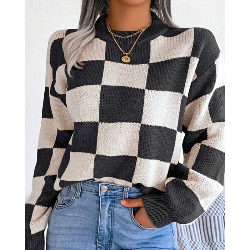 Why Choose Women's Sweater Pullover Casual Plaid Ribbed Crew Neck Knitted Long Sleeve Regular Tops Knit Daily Going out Weekend Gray Winter?