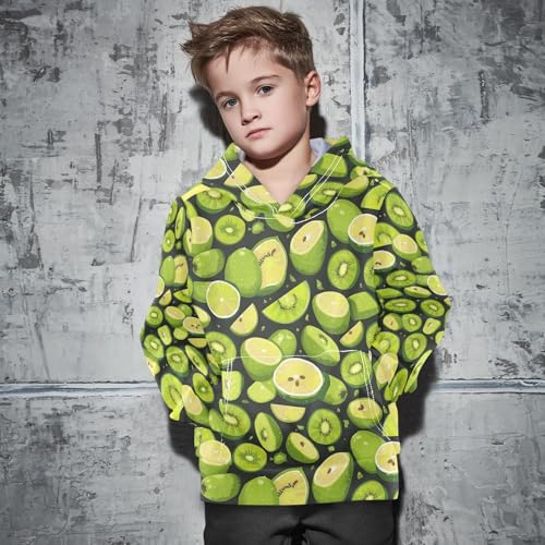 Green Kiwi Lime Kids Boys Girls Sweatshirt Long Sleeve Pullover Hoodies with Kangaroo Pocket 5