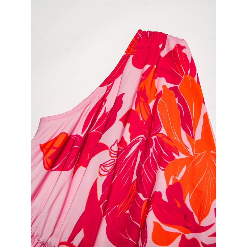 More information about Women's Print Dress Maxi Dress Pink Sleeveless Floral Floral Style Buckle Summer One Shoulder Dresses Vacation S M L