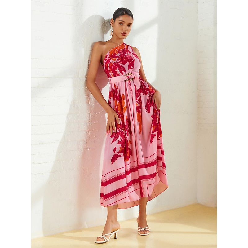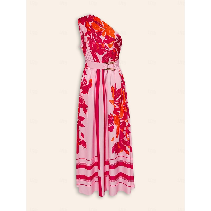 Women's Print Dress Maxi Dress Pink Sleeveless Floral Floral Style Buckle Summer One Shoulder Dresses Vacation S M L 12