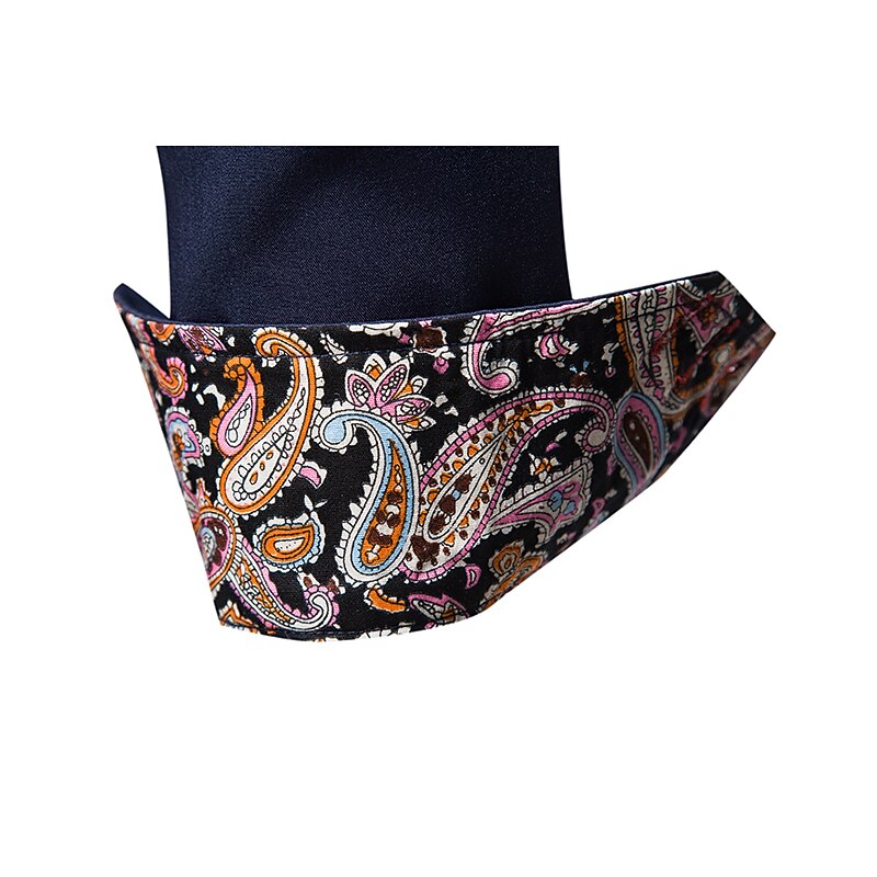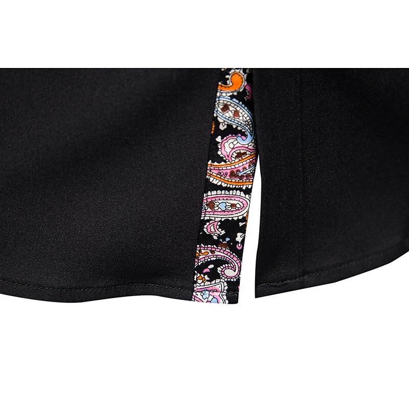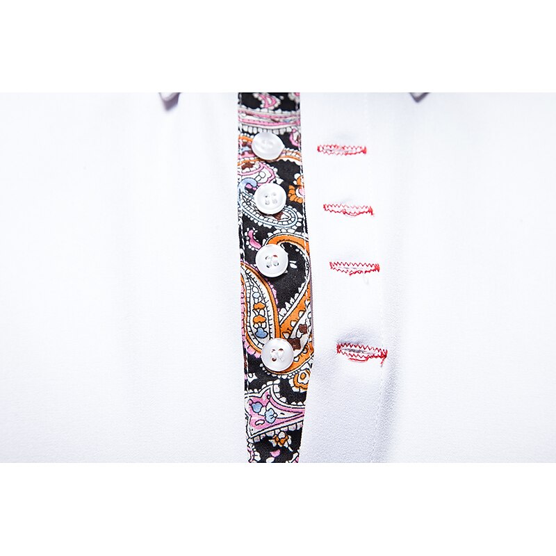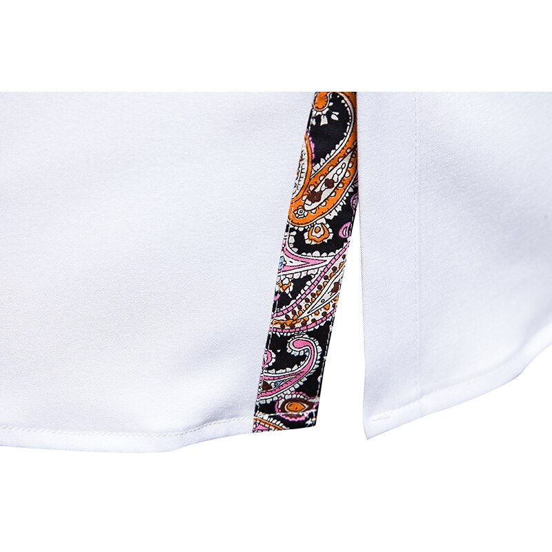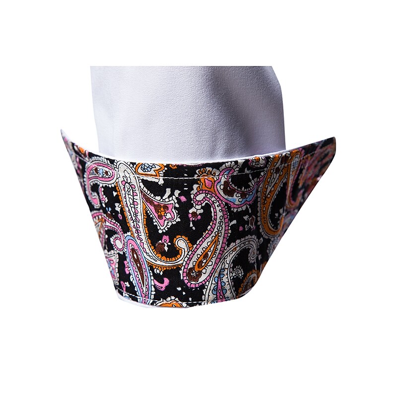 This shirt features a classic button-up design with a collared neckline. The one-of-a-kind paisley-patterned trim on the inner collar, placket, and cuffs adds a new-age touch of sophistication. Contrast stitching on the buttons enhances its contemporary appeal, perfect for matching with both tailored trousers and casual jeans.