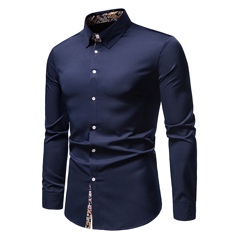 More information about Men's Dress Shirt Collared Shirt Button Up Shirt Abstract Wedding Daily Black White Wine Navy Blue Long Sleeve Clothing Apparel