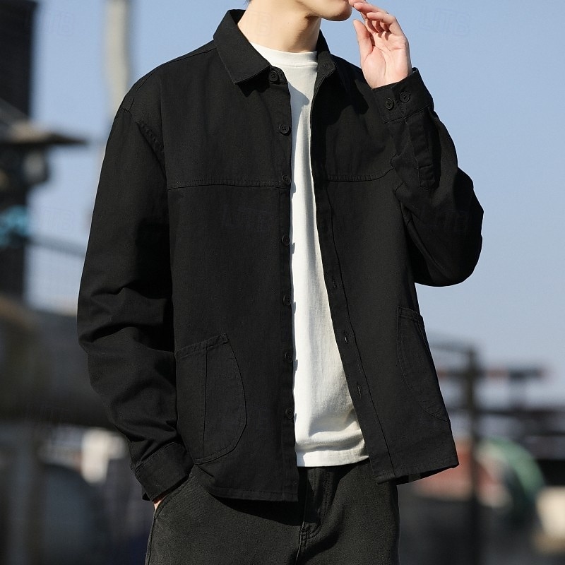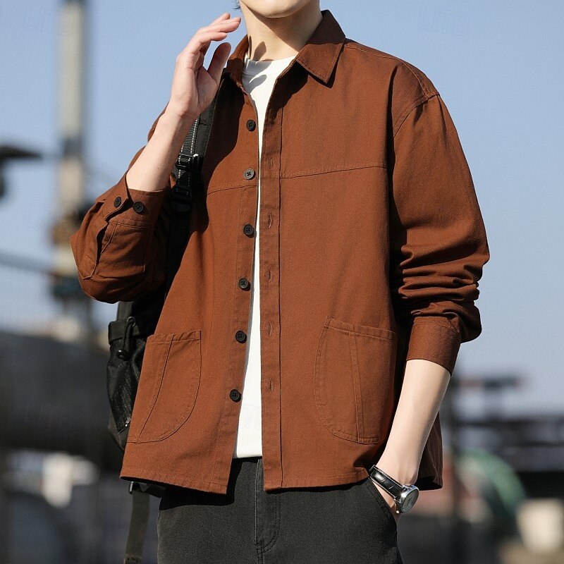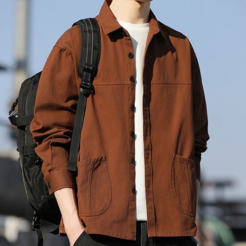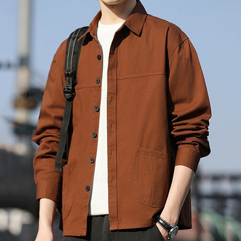 Why Choose Men's Shirt Casual Shirt Shirt Jacket Plain Vacation Daily Wear Black Orange Army Green Coffee Long Sleeve Lapel Spring Autumn / Fall Clothing Apparel Pocket?