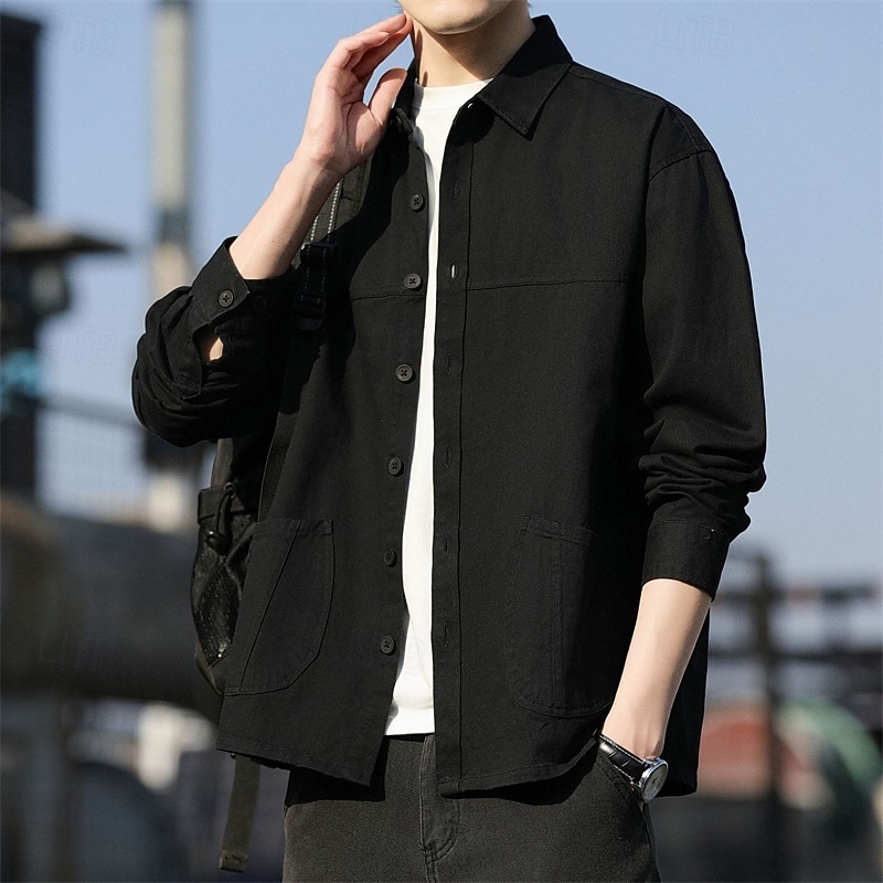This Men's Shirt Casual Shirt Shirt Jacket Plain Vacation Daily Wear Black Orange Army Green Coffee Long Sleeve Lapel Spring Autumn / Fall Clothing Apparel Pocket combines elegant design with practical functionality. Every detail has been carefully considered to ensure you get the finest possible experience. The first-class construction means this product will serve you well for years to come.