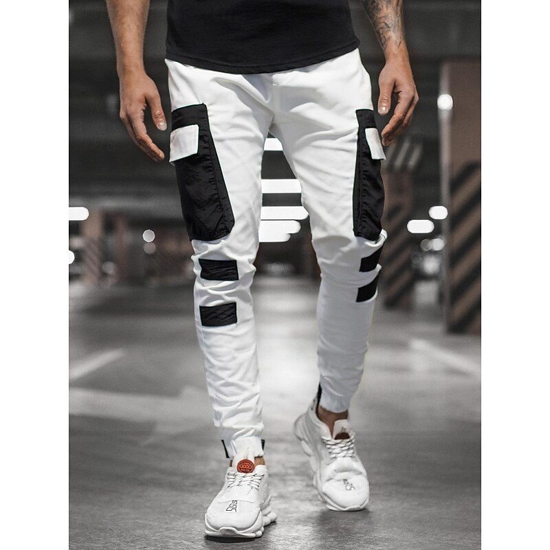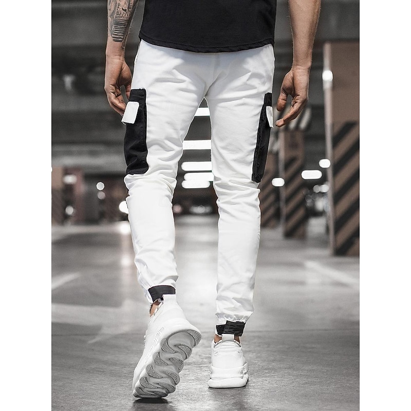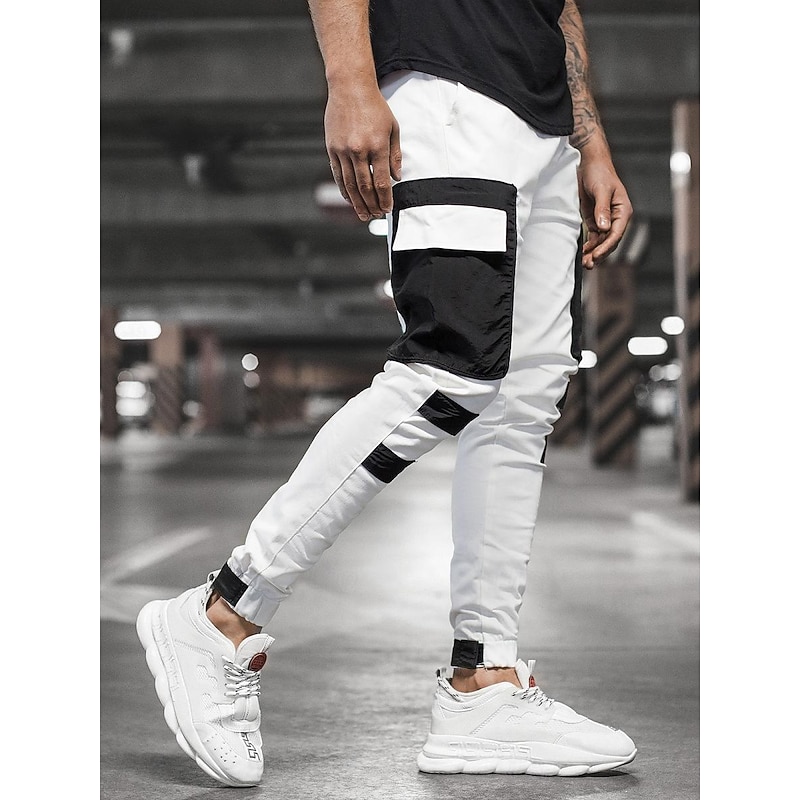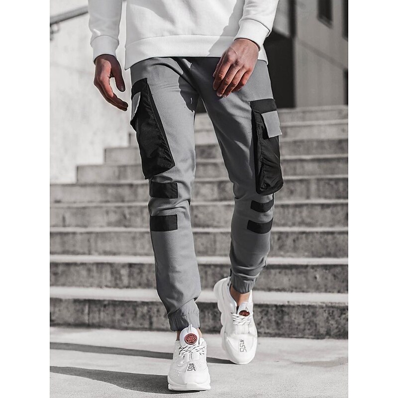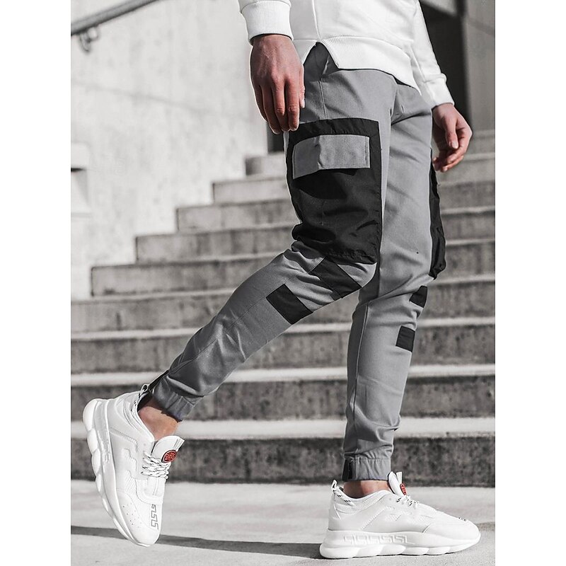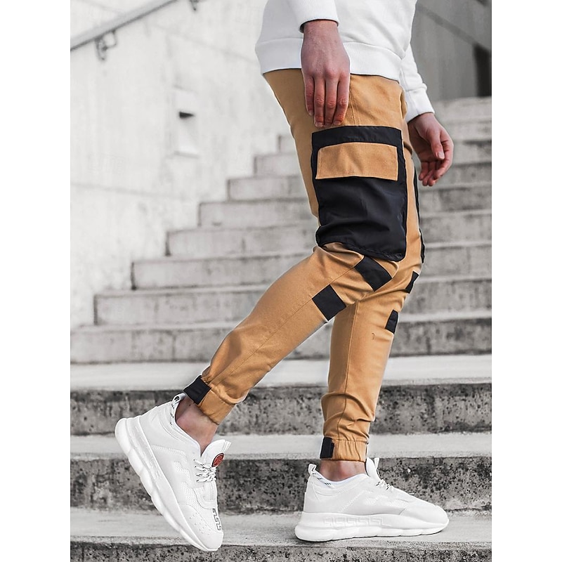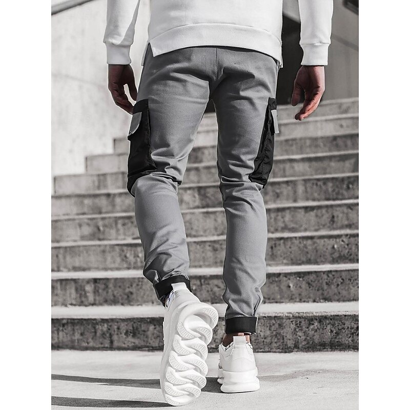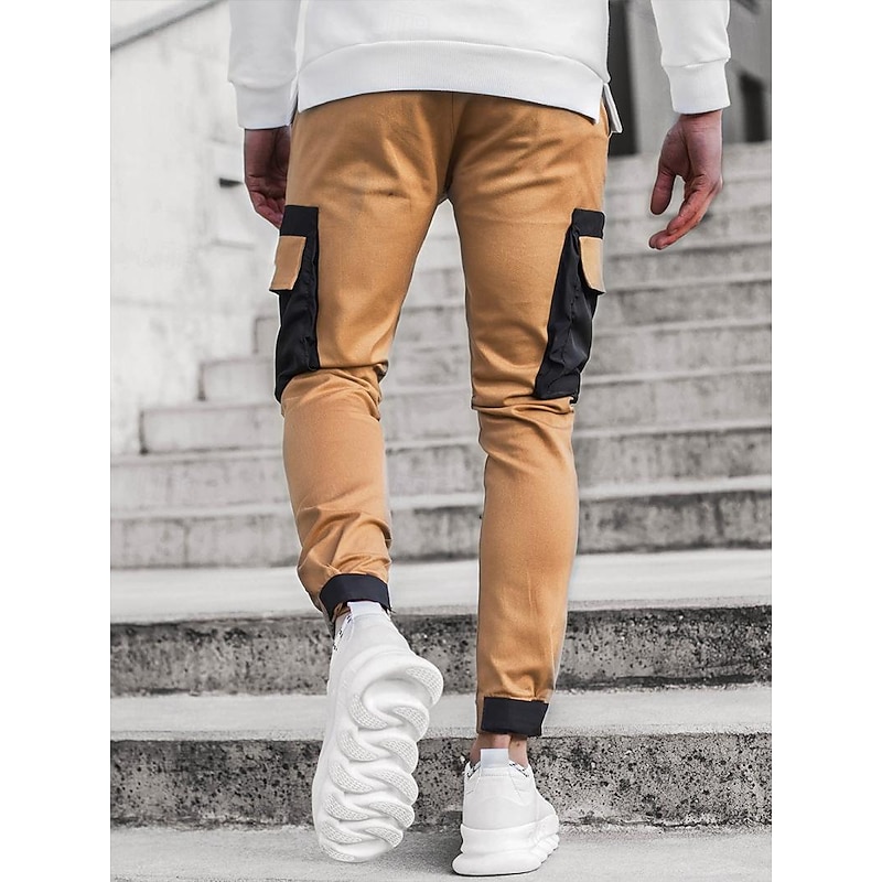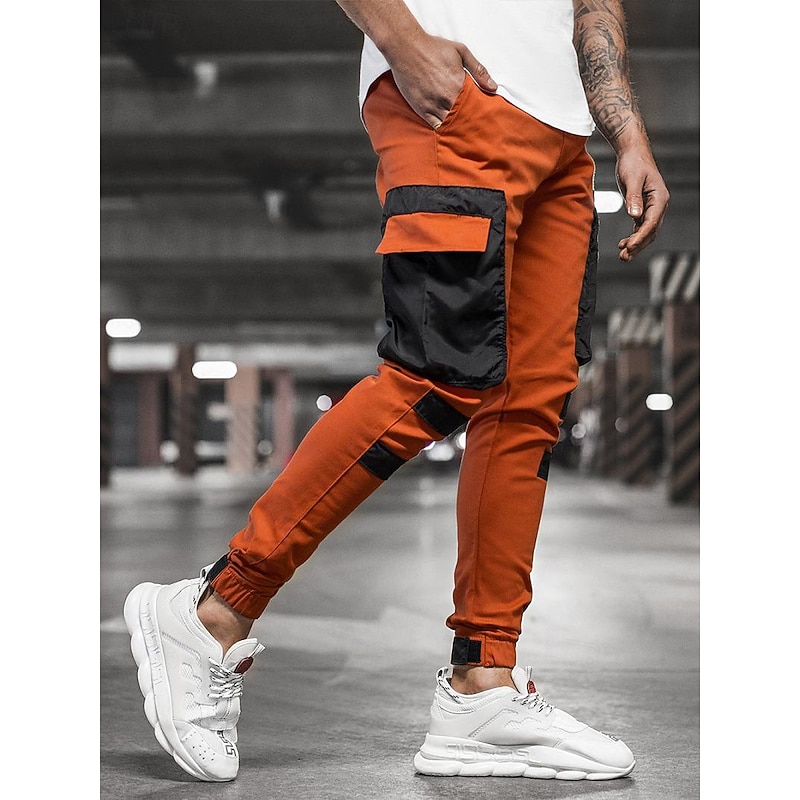 Men's Cargo Pants Cargo Trousers Trousers Patchwork Drawstring Elastic Waist Color Block Sports Outdoor Daily Wear Streetwear Sporty Slim Black Red