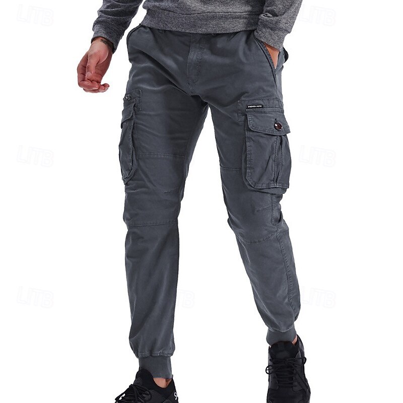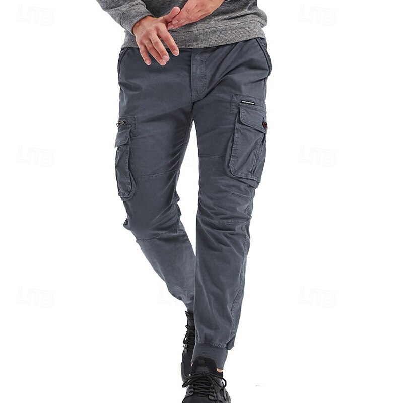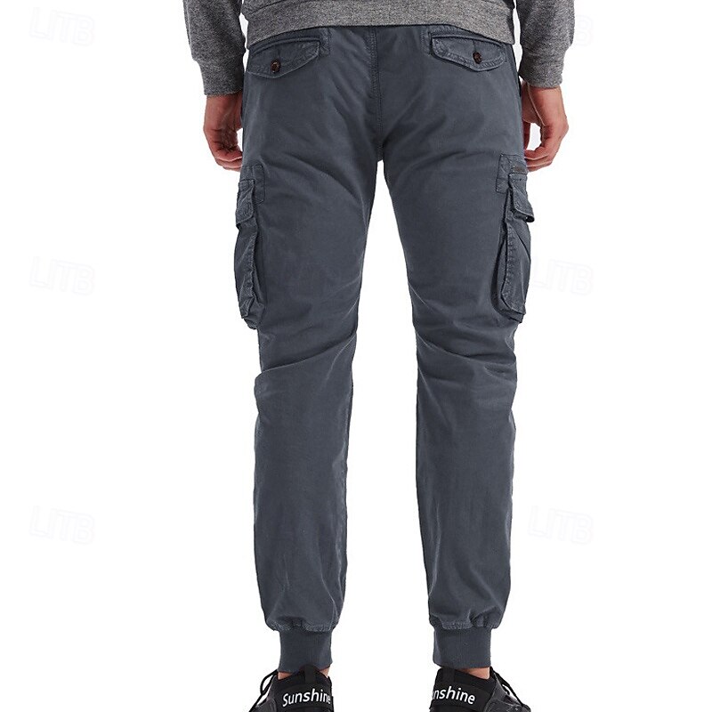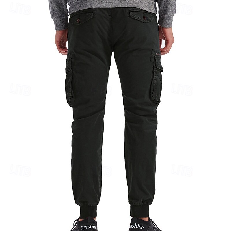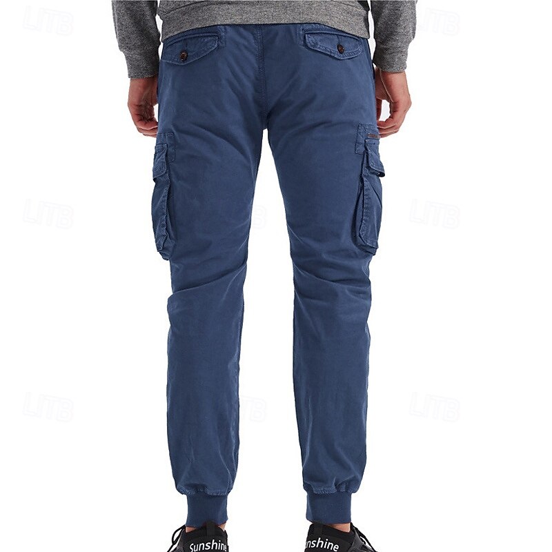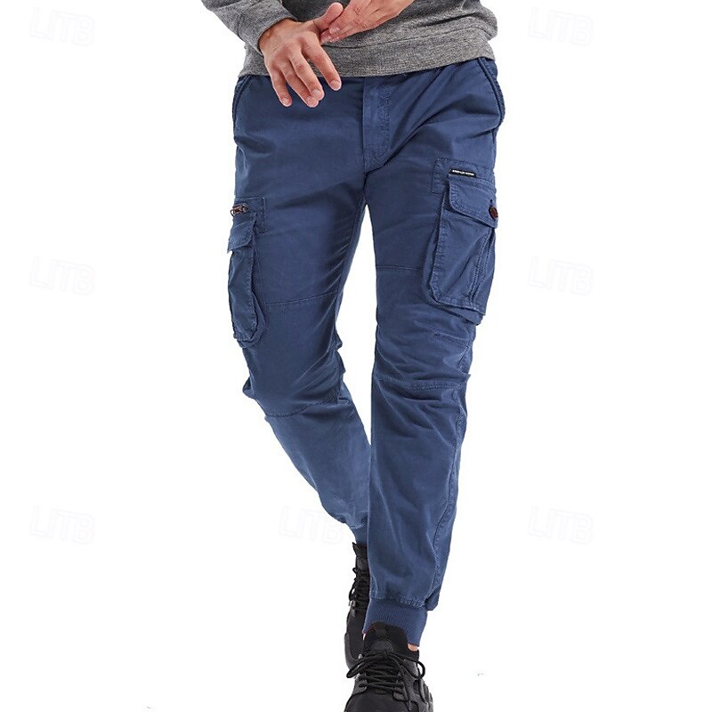 Highlights [Fabric]: Crafted from a durable 95% cotton fabric, these men's cargo pants offer exceptional comfort and breathability. The material ensures longevity and is ideal for both casual and outdoor wear. [Fit]: These joggers feature a relaxed regular fit with a tapered leg design that finishes with elastic cuffs, giving a contemporary and sporty appearance. The mid-waist design ensures a snug and comfortable fit for various body types. [Design Highlights]: The tactical pants boast multiple functional pockets, including spacious side cargo pockets with secure Velcro flaps, perfect for carrying essentials on the go. The elastic waist with a drawstring provides easy adjustability and enhances comfort during active pursuits. [Occasions]: Perfect for daily wear, outdoor adventures, camping, and hiking, these cargo pants blend practicality with style. Whether you're heading for a casual outing or an outdoor escapade, they are a versatile choice. [Size Range]: Available in a wide range of sizes including 29, 30, 32, 34, 36, 38, and 4XL, ensuring a suitable fit for many. Offered in a variety of colors like Black, Wine, Green, Gray, Army Green, Khaki, Light Grey, and Royal Blue, they cater to diverse style preferences. Perfect for everyday use. excellent materials and excellent craftsmanship ensure long-lasting durability.