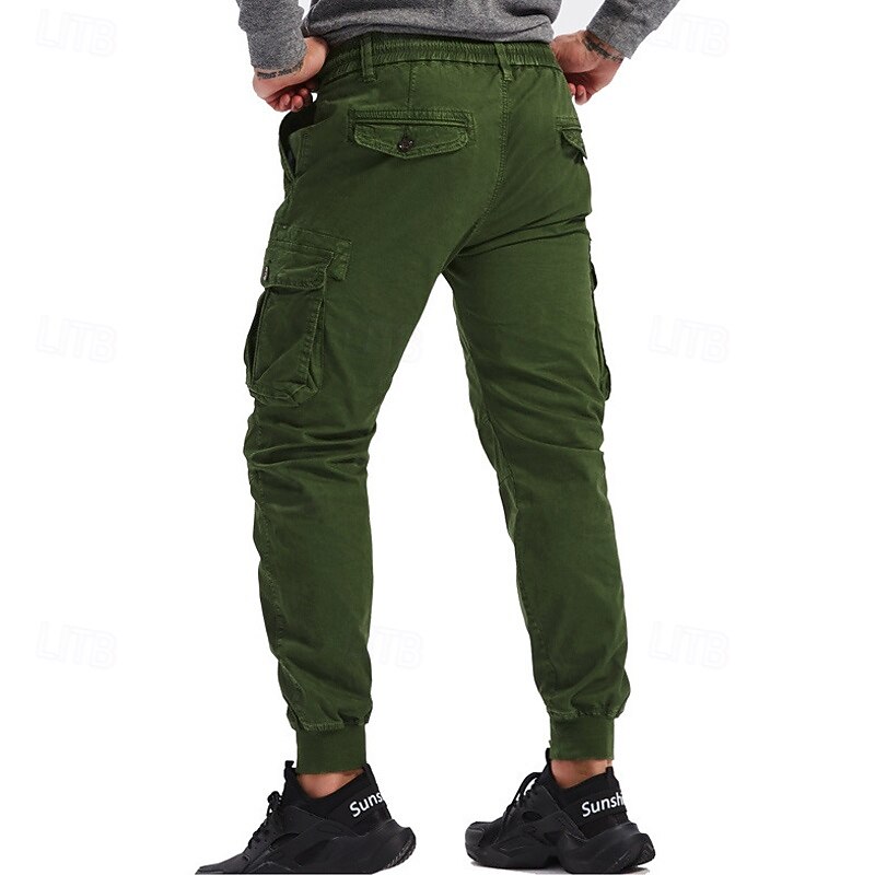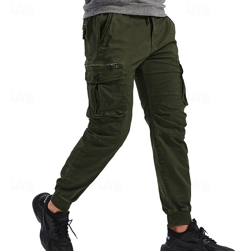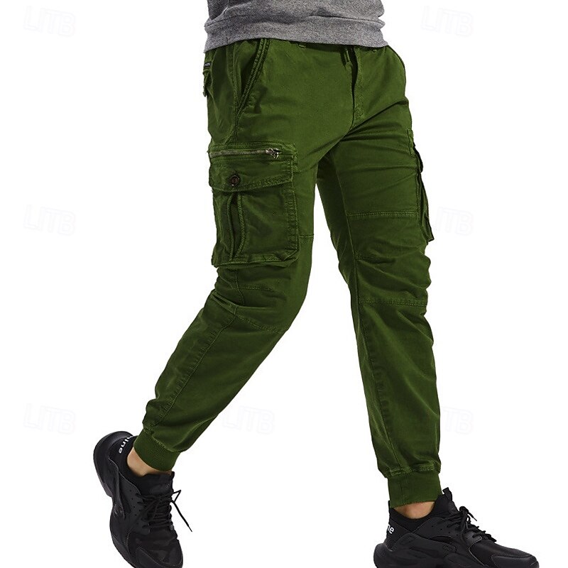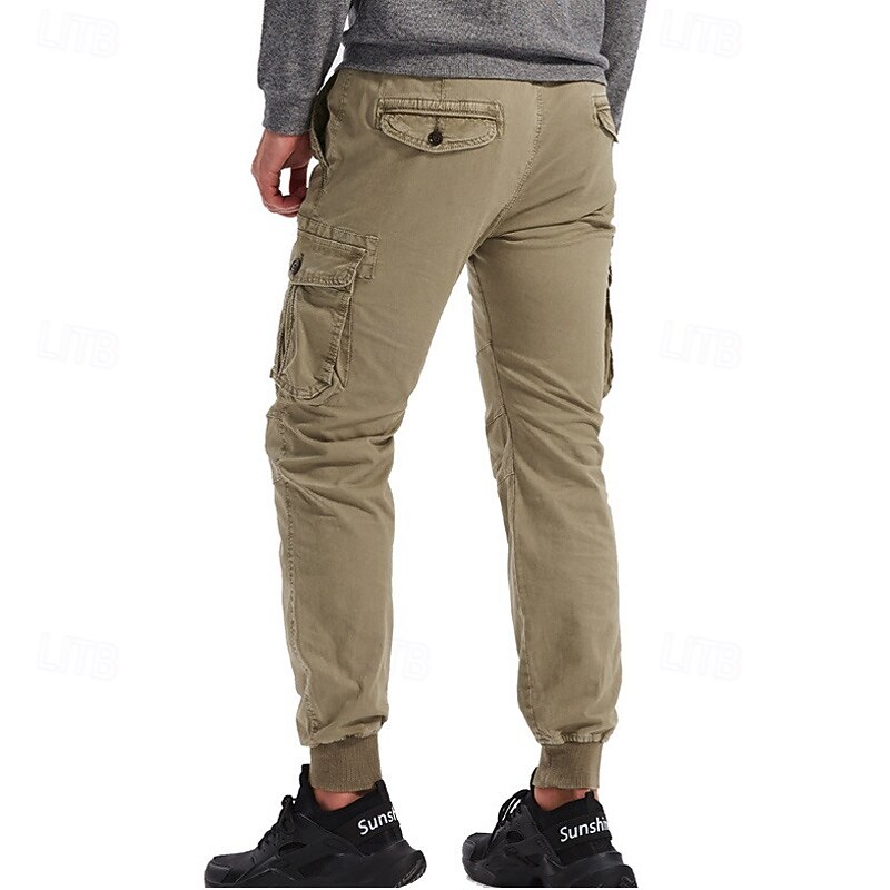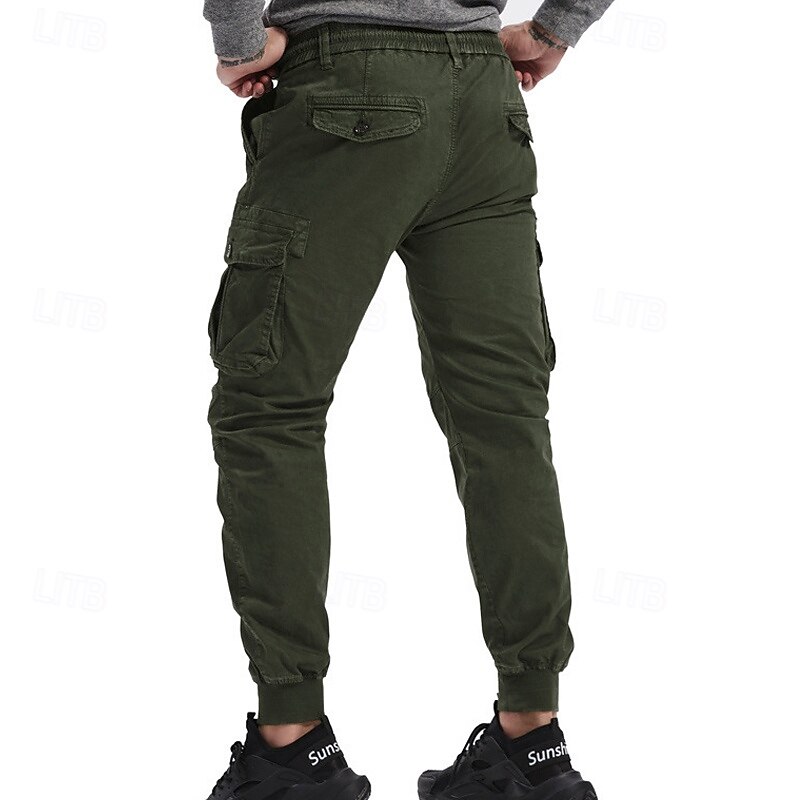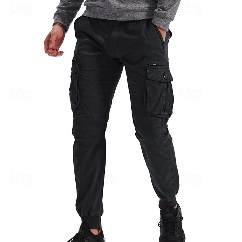 Highlights [Fabric]: Crafted from a durable 95% cotton fabric, these men's cargo pants offer exceptional comfort and breathability. The material ensures longevity and is ideal for both casual and outdoor wear. [Fit]: These joggers feature a relaxed regular fit with a tapered leg design that finishes with elastic cuffs, giving a contemporary and sporty appearance. The mid-waist design ensures a snug and comfortable fit for various body types. [Design Highlights]: The tactical pants boast multiple functional pockets, including spacious side cargo pockets with secure Velcro flaps, perfect for carrying essentials on the go. The elastic waist with a drawstring provides easy adjustability and enhances comfort during active pursuits. [Occasions]: Perfect for daily wear, outdoor adventures, camping, and hiking, these cargo pants blend practicality with style. Whether you're heading for a casual outing or an outdoor escapade, they are a versatile choice. [Size Range]: Available in a wide range of sizes including 29, 30, 32, 34, 36, 38, and 4XL, ensuring a suitable fit for many. Offered in a variety of colors like Black, Wine, Green, Gray, Army Green, Khaki, Light Grey, and Royal Blue, they cater to diverse style preferences. Perfect for everyday use. excellent materials and excellent craftsmanship ensure long-lasting durability.