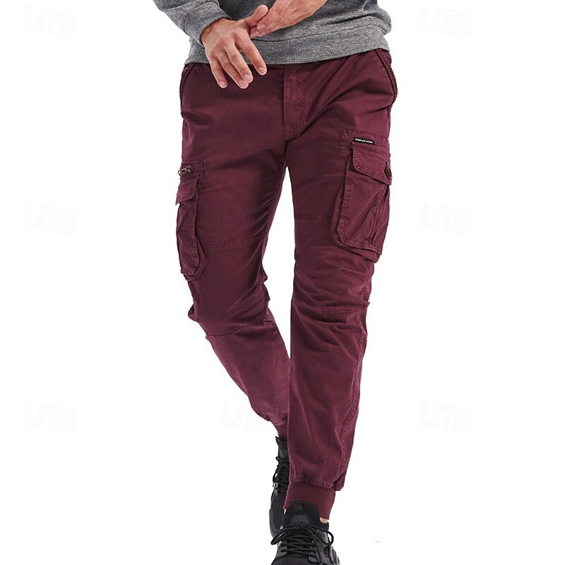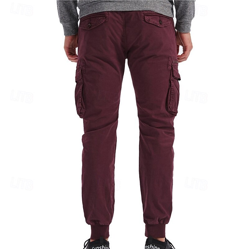 Men's Cargo Pants Joggers Tactical Pants Trousers Elastic Waist Multi Pocket Elastic Cuff Plain Wearable Outdoor Daily Camping & Hiking Fashion timeless Black Wine