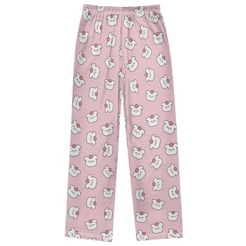 popular ! Boy's Pj Pants White Dog Head Strawberry Pink Lounge Bottoms Elastic Waist Kids Joggers with Pockets Size 6-14