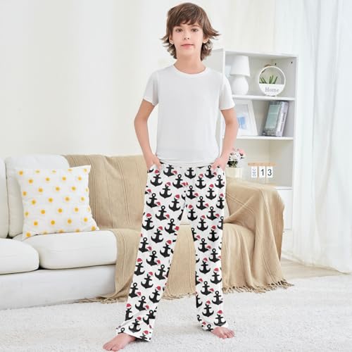 popular ! Boy's Pj Pants Anchor Christmas Santa Hat Lounge Bottoms Elastic Kids Sweatpants Joggers with Pockets Size 6-14