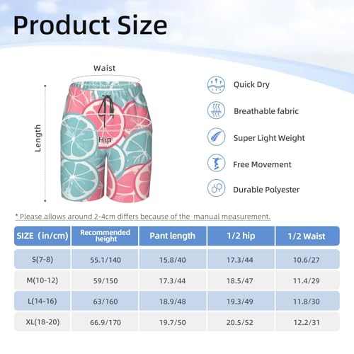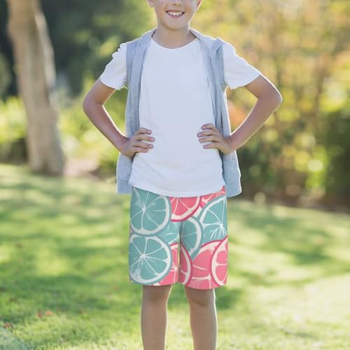 Pink Blue Citrus Slices Youth Beach Pants, gentle and Breathable, with Drawstring Waist, Suitable for Sports and Leisure.