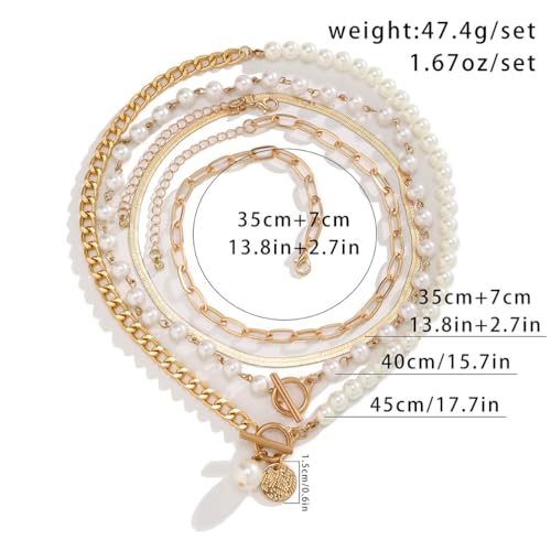 Chunky Gold Layered Pearl Necklaces Set for Women Trendy Stack Half Chain Half Pearls Beaded Statement Necklace OT Buckle Paperclip Choker Jewelry Gift 5