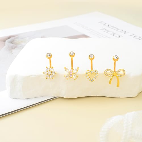 • 【TRENDY STYLE】: One buy includes 8pcs belly button rings: pink heart belly piercing; opal belly ring; flower belly ring; butterfly belly ring; bow belly button ring. Multiple style to decorate your navel.